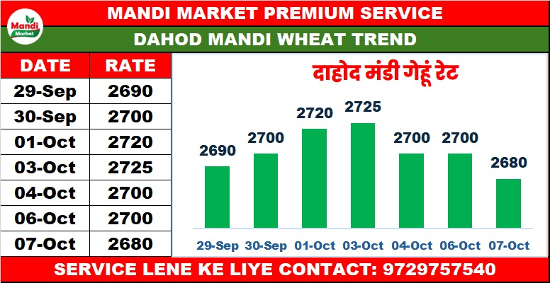 गेहूं 1% CD भाव ₹ 2720 मंदी ₹ 10 (Mandi Paid)