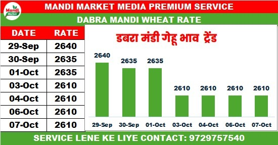 बढ़िया राज गेहूं भाव ₹ 2610 भाव स्थिर